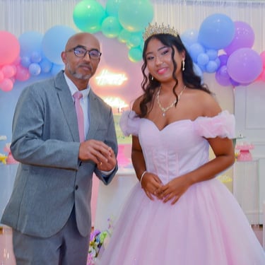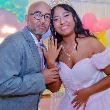 Um dos pontos altos da festa foi a tradicional valsa com o pai e a mãe da debutante. Esse momento foi repleto de emoção, simbolizando o início de uma nova fase na vida da Yasmim. Quando a música começou a tocar, todos os olhares se voltaram para o centro da pista de dança, onde a jovem dançava com seus pais, celebrando não apenas o seu aniversário, mas a união da família.