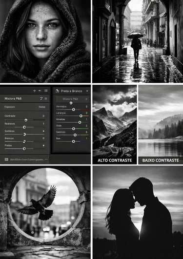Assim você tem mais controle na hora de converter para preto e branco — ajustando contraste, exposição e tons com mais precisão.